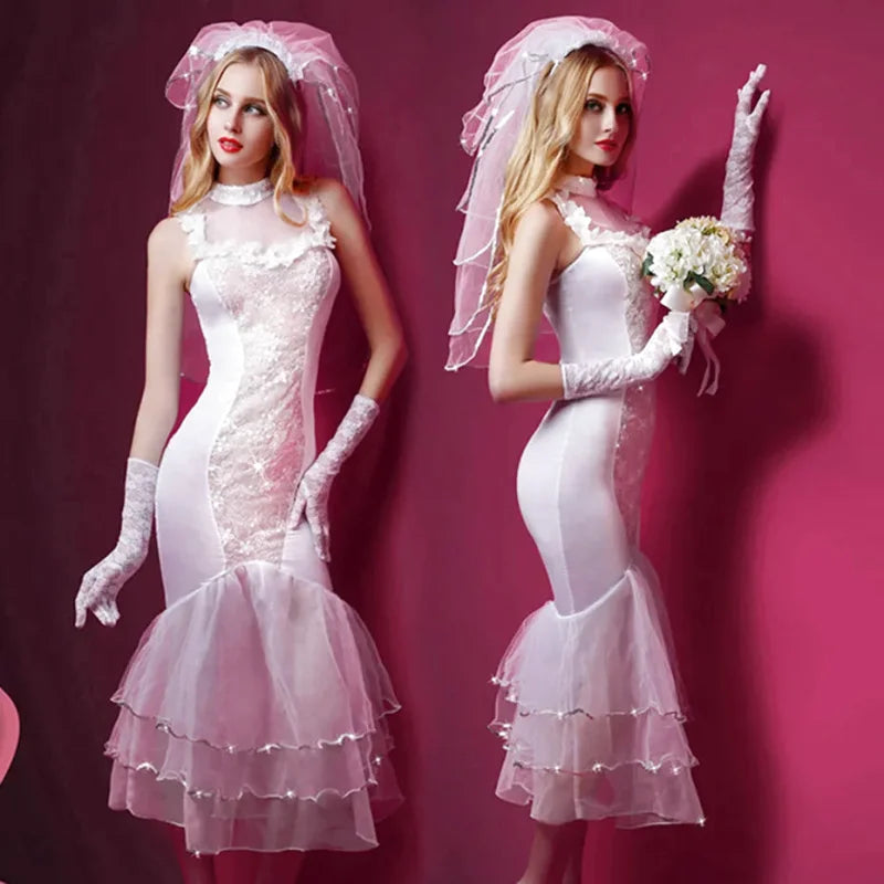 Convierta sus noches en un cuento de hadas con nuestro Disfraz Novia Sexy, especialmente diseñado para mujeres que sueñan con vestir una elegancia atemporal. Mezclando tradición y modernidad, este disfraz es una celebración de belleza y romanticismo, ideal para añadir un toque de refinamiento y magia a sus eventos.
